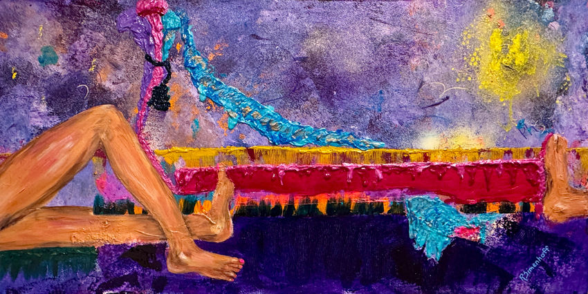 This 48"x24" on deep stretched canvas is a modern abstract acrylic sized perfect to fit over your sofa or console. Abundant in texture and vibrant color, it is sure to be a conversation starter. Sensual yet modest, it's perfect for any room in your home.